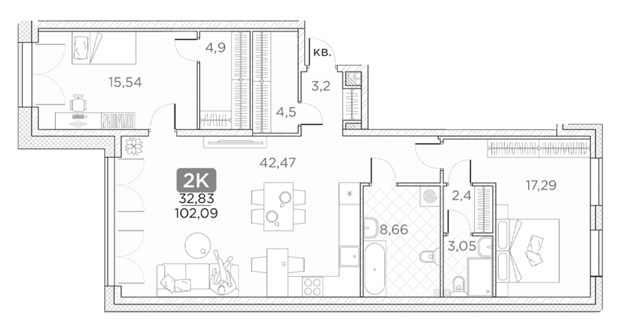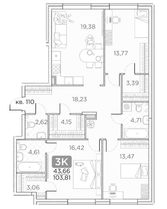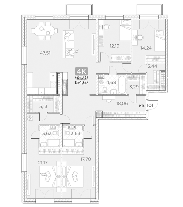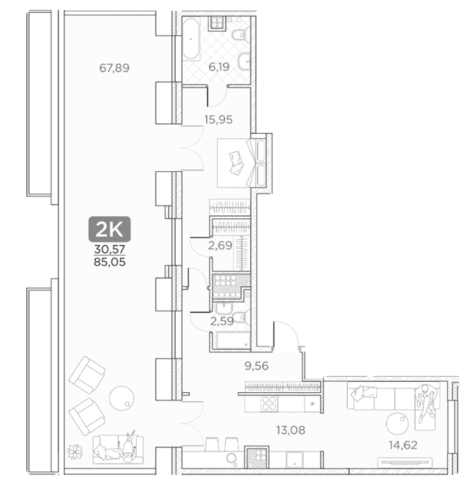 Легко подобрать вариант под свой стиль жизни — от компактных до семейных. Гардеробные, дополнительные санузлы, кухни-гостиные — всё под реальные сценарии жизни.