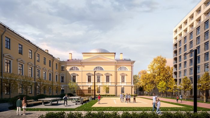 Камерный квартал с историей. Проект ощущается не как потоковая застройка, а как продуманное городское пространство с душой. Внутри — отреставрированный лицей XIX века, который добавляет статус и редкую атмосферу месту.