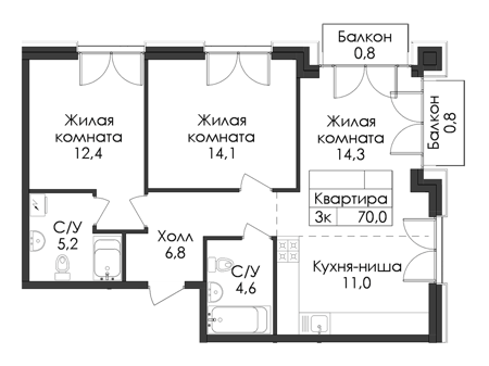 Потолки от 3 метров и окна в пол наполняют квартиры естественным светом. В такой среде легче дышится, думается и живётся.